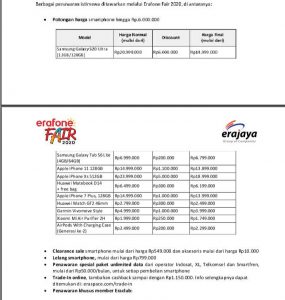 Berbagai penawaran istimewa ditawarkan melalui Erafone Fair 2020, di antaranya: