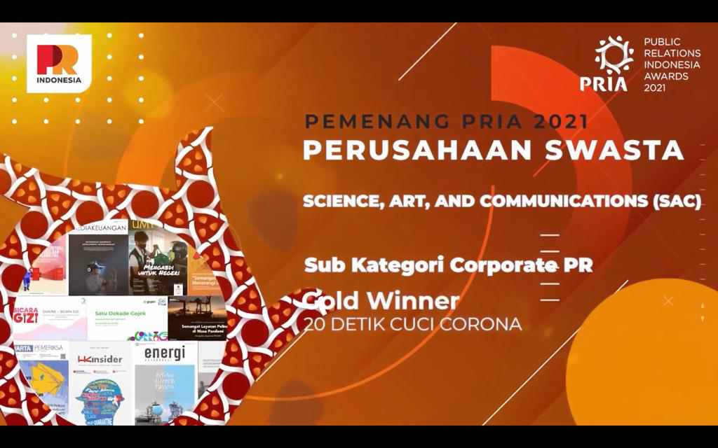 Kreativitas muncul justru di saat tantangan datang. Ini dibuktikan kembali oleh Science, Art & Communications (SAC) Indonesia dengan meraih predikat Gold Winner pada Sub Kategori Corporate PR untuk perusahaan swasta di PR Indonesia Awards (PRIA) 2021, ajang kompetisi program komunikasi dan kehumasan paling komperhensif di Indonesia. Setelah sebelumnya telah meraih predikat Digital Agency of The Year di Citra Pariwara 2020.