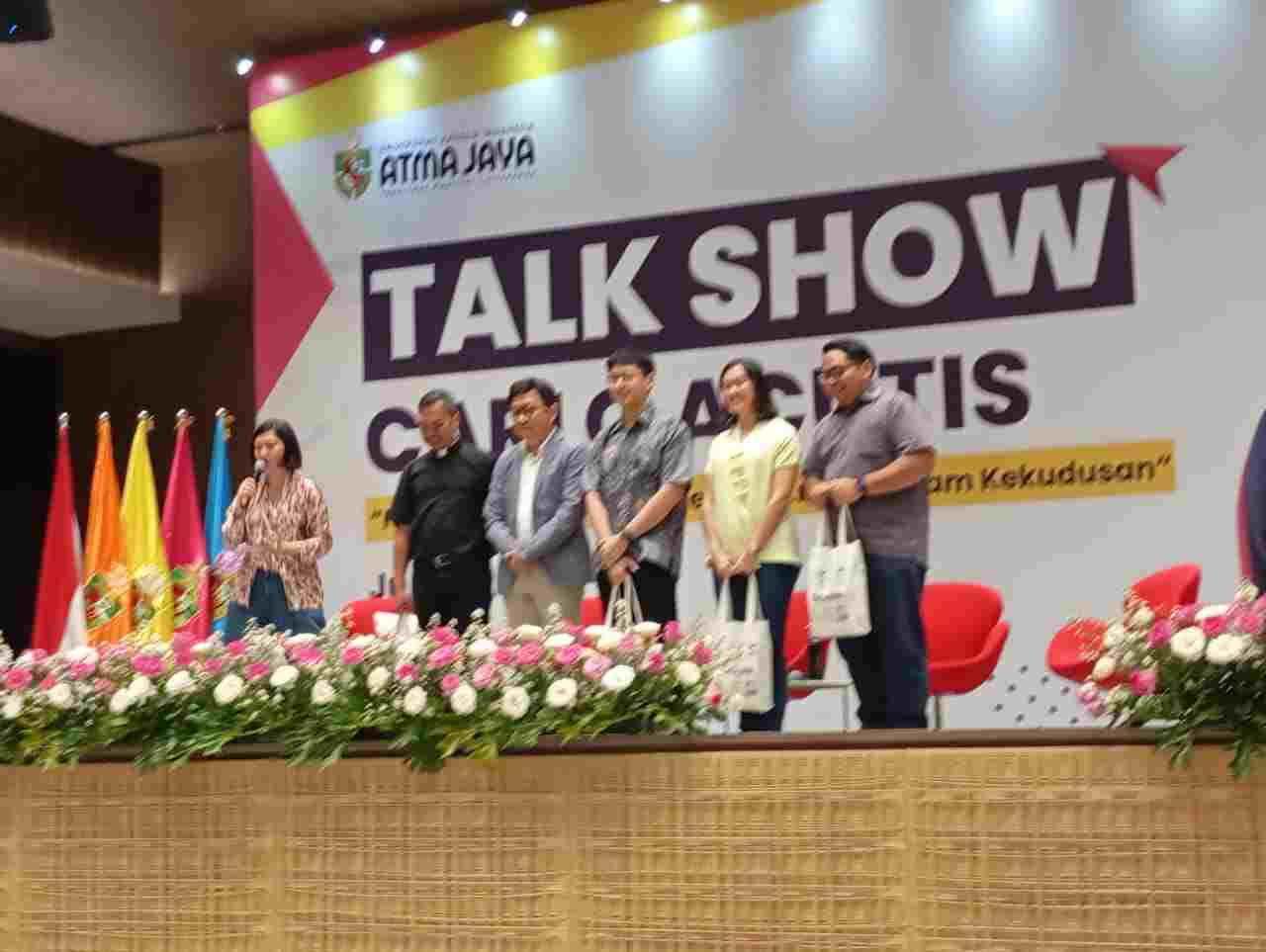 Setelah Misa Votif selesai dilanjutkan acara talkshow new way of :menjadi kreatif dalam kekudusan bertempat di Ballroom Yustinus Lantai 15, Kampus Semanggi,Unika Atmajaya.Acara talkshow ini dibawakan oleh Feli Sumakyu.Rektor Unika Atmajaya yang bernama Prof.DR.dr Yuda Turana,Sp.S(K) mengatakan Atmajaya didirikan oleh Bapak Frans Seda pada usia 43 tahun mengatakan ada seorang anak muda kecelakaan naik sepeda dan pendarahan diotaknya menjadi koma dan orangtuanya berziarah ke makam Carlo Acutis terjadi mukjizat penyembuhan.
